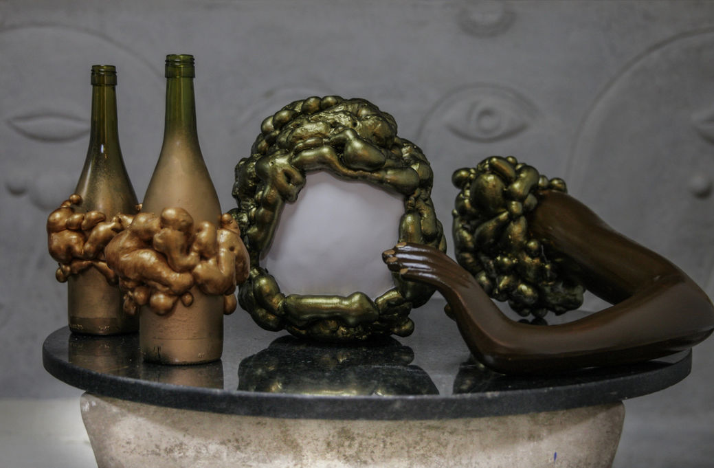 Argila, massa fria, acrílica, poliuretano e verniz